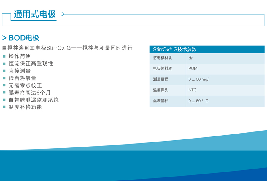 產(chǎn)品描述:德國(guó)WTW StirrOX G BOD溶解氧電極,自攪拌溶氧電極,不須極化等待;恒速測(cè)試;耗氧少 (0.008 μg/h);無(wú)零點(diǎn)電流;薄膜不容易破;適于測(cè)試BOD5........
