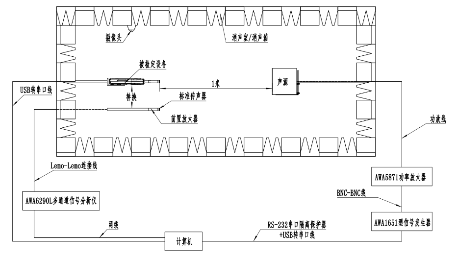 1、聲級計自動檢定系統示意圖