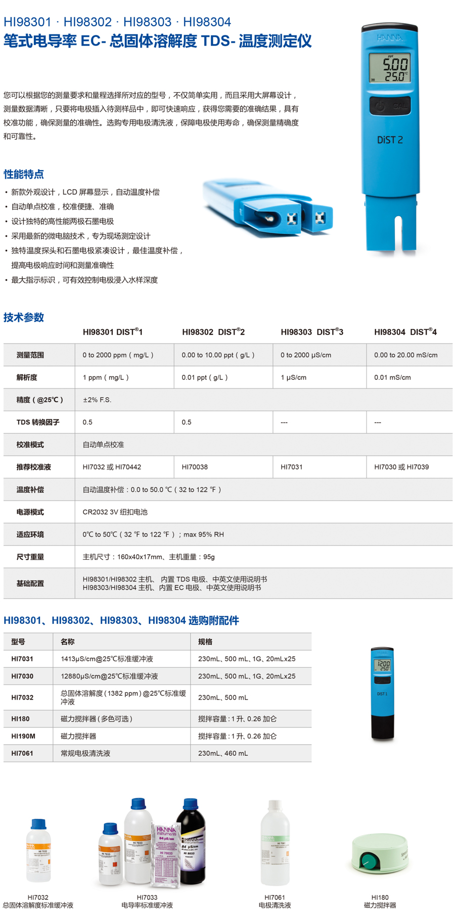 主機,內(nèi)置電導率EC電極,HI70030 袋裝電導率標準緩沖液,規(guī)格:20mL,中英文使用說明書,HI721318 專用攜帶盒
